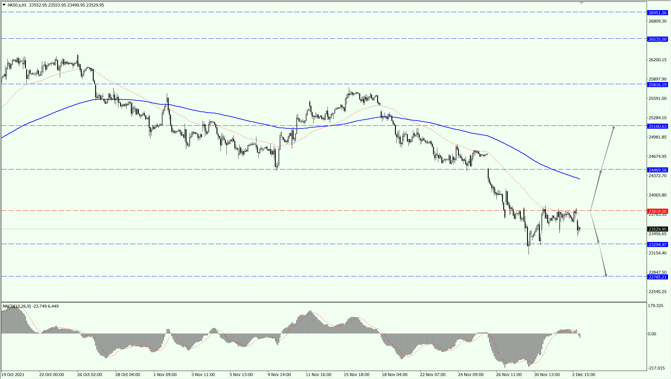 HK50 今日关注 23818 一线,如果 HK50 力度上破 23818 一线,并站稳于 23818 一线上方,届时关注 24469 和 25160 两个位置的压制力度;如果 HK50 稳定运行于 23818 一线下方,届时依旧关注 23294 一线的支撑力度。