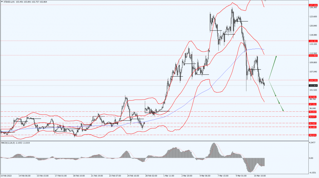 • 如果油价力度上破 104.53 一线,届时关注 111.95 一线的压制力度。