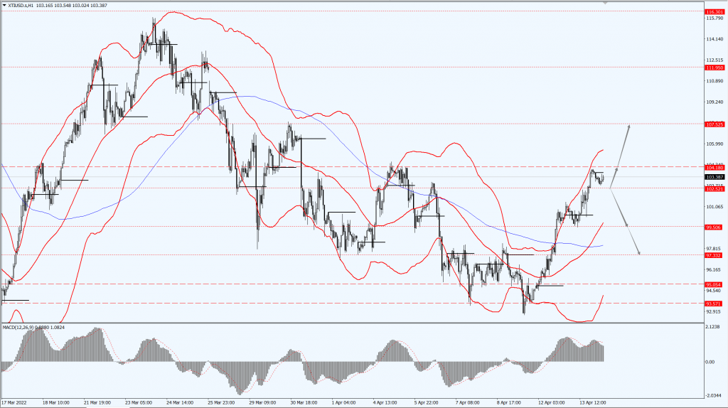 - 如果油价运行于 102.52 一线上方,届时则关注 104.18 和 107.52 两个位置的压制力度。