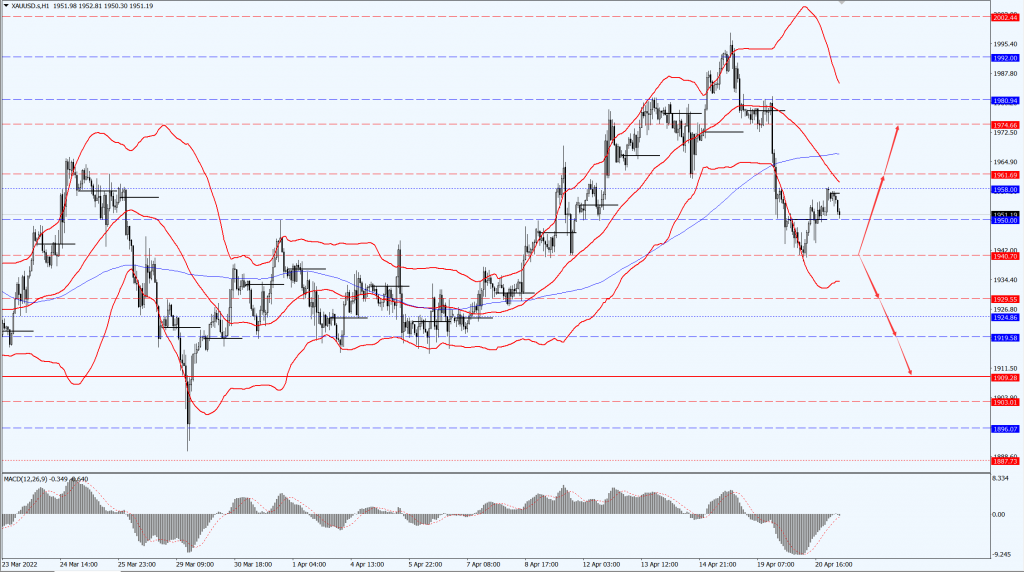- 如果金价力度下破 1940 一线,届时关注 1929 和 1919 两个位置的压制力度。
