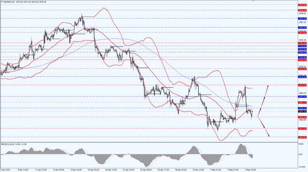 - 如果金价运行于 1869 一线下方,届时关注 1855 和 1844 两个位置的支撑力度。
