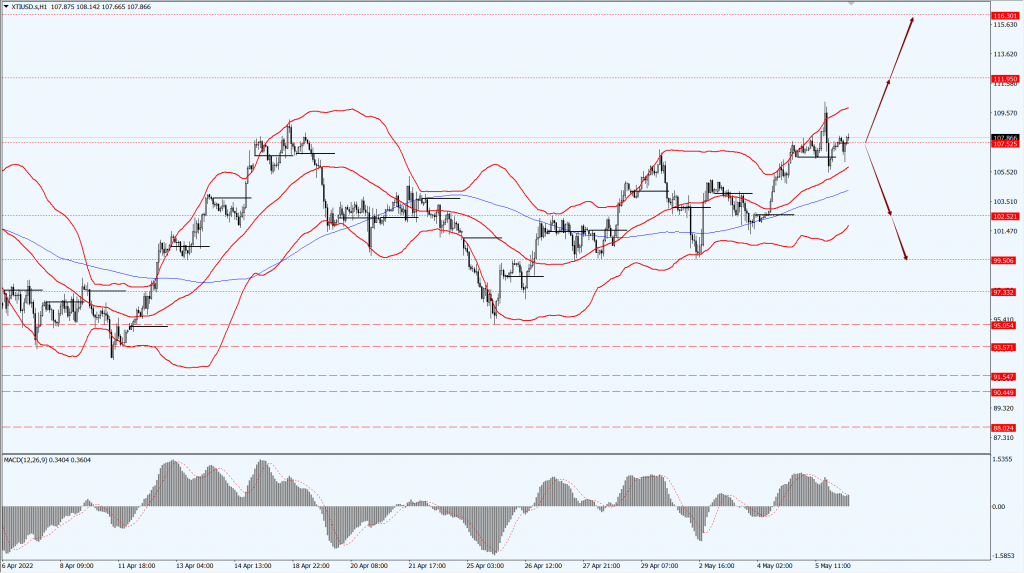 - 如果油价运行于 107.52 一线下方,届时关注 102.52 和 99.50 两个位置的支撑力度。