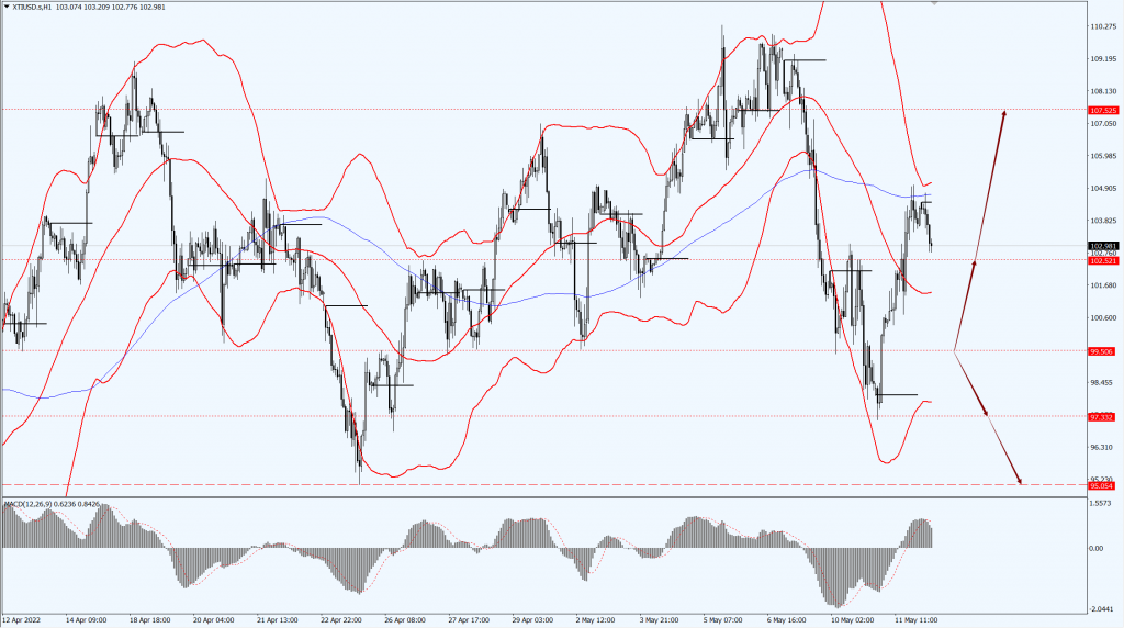 - 如果油价运行于 99.50 一线上方,届时则关注 102.52 和 107.52 两个位置的压制力度;