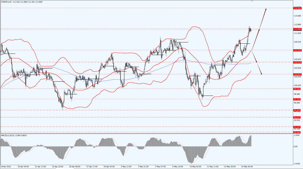 • 如果油价运行于 107.52 一线上方,届时则关注 111.95 和 116.30 两个位置的压制力度。