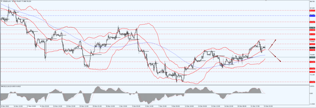 - 如果油价运行于 77.76 一线上方,届时则关注 79.07 和 80.13 两个位置的压制力度;