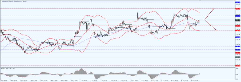今日,亚市盘初,现货黄金震荡微涨,一度创两个交易日高点至 1804.78 美元附近,中国周一晚间发文明确,自 2023年 1 月 8 日起,将新型冠状病毒肺炎更名为新型冠状病毒感染,取消入境后集中隔离、有序恢复出境游。这令市场风险偏好有所改善,打压了美元的避险需求,美元跌创三个交易日新低,给金价提供支撑,俄乌地缘局势持续也给金价提供支撑。
