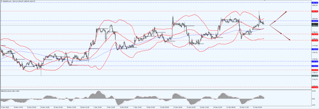 - 如果金价运行于 1808 一线上方,届时关注 1816 和 1832 两个位置的压制力度。