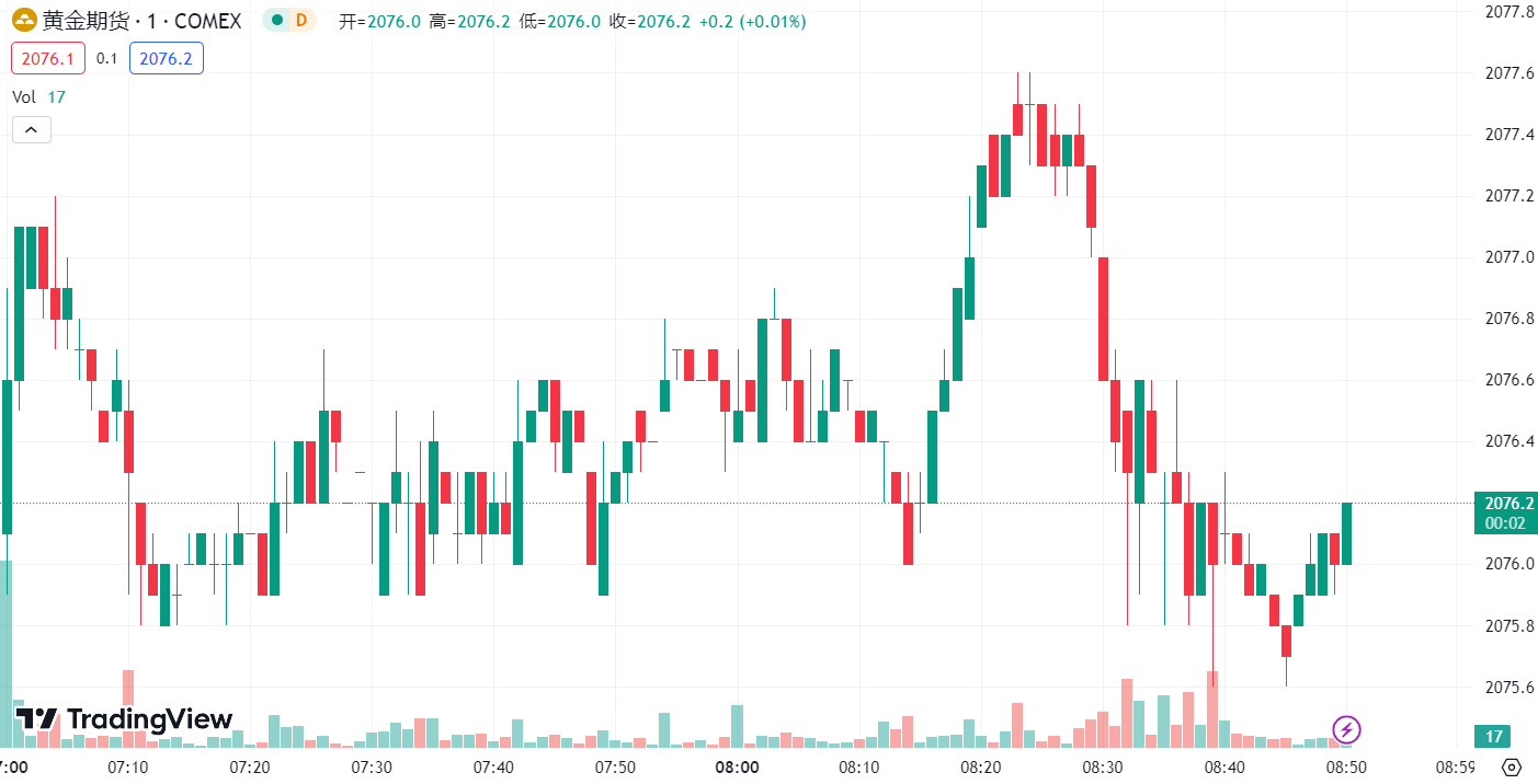 周四,金价在早盘升至 2088 美元/盎司后,失去吸引力并跌破 2070 美元/盎司。美国国债收益率温和回升,现货黄金收报 2065.37 美元/盎司,跌幅 0.59%;黄金期货收跌 0.46%,收报 2083.5 美元/盎司。