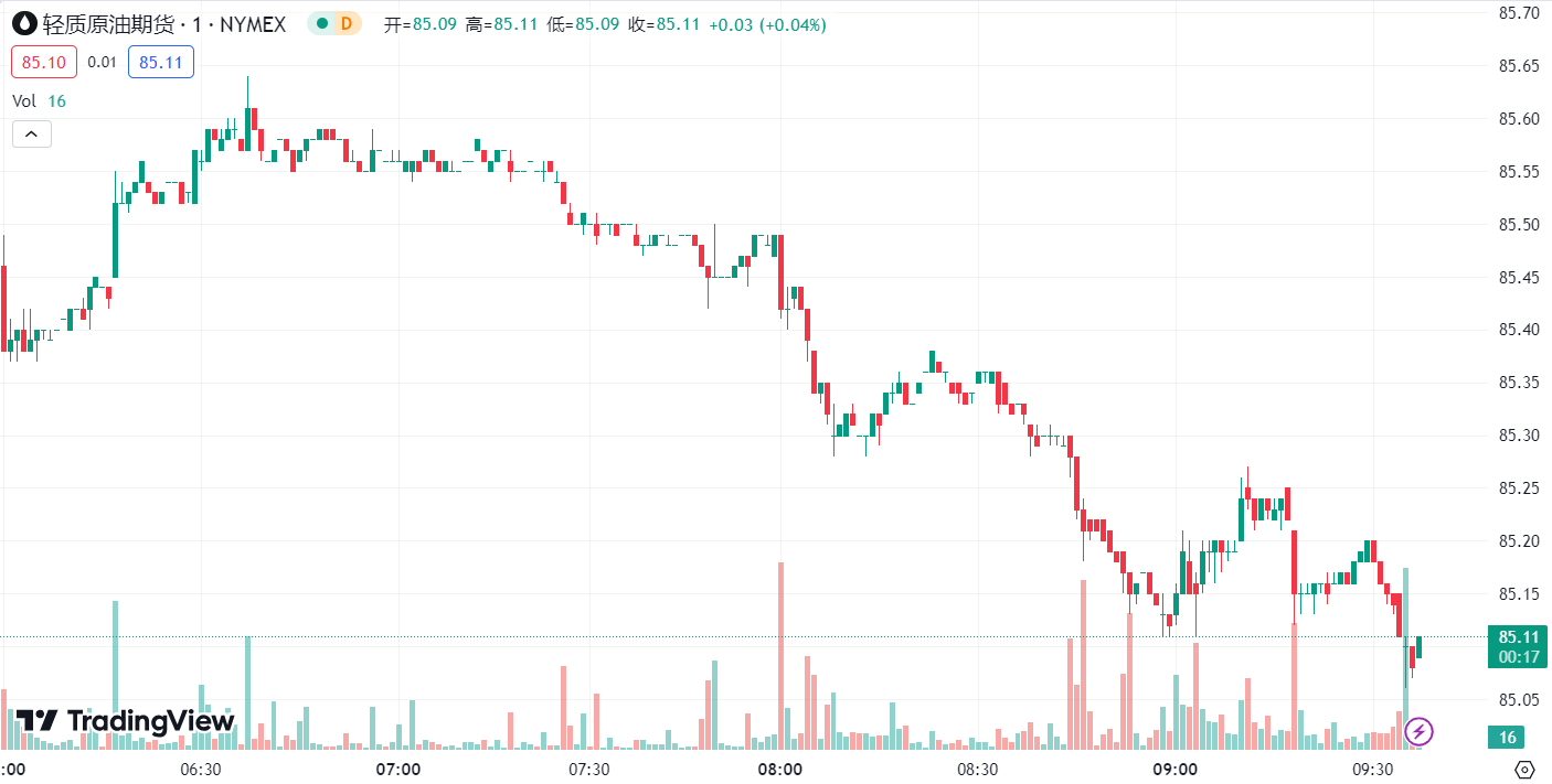 周二,WTI 原油盘中冲上 85 美元上方,日内涨超 1%,续刷去年 10 月以来新高,最终收涨 1.76%,报 85.39 美元/桶;布伦特原油也创下去年 10 月来新高,最终收涨 1.7%,报 89.23 美元/桶。
