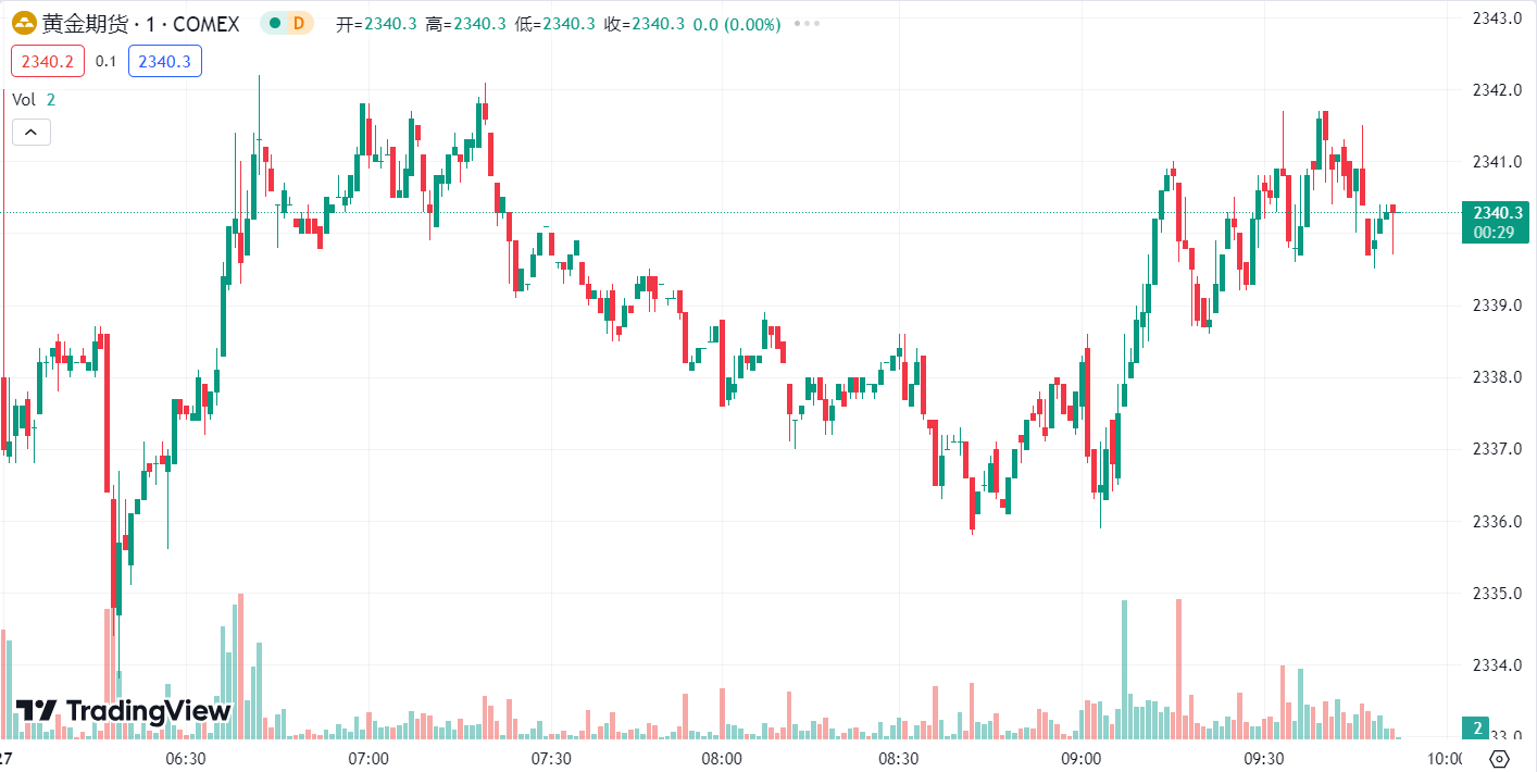上周五整体金价维持低位弱势震荡修复,亚欧盘价格在快速向下刺破 2325 一线后企稳回升,午后进一步反弹至 2340 上方陷入横盘震荡,晚间美盘加速冲高刺破 2347 关口压制回落震荡收盘。