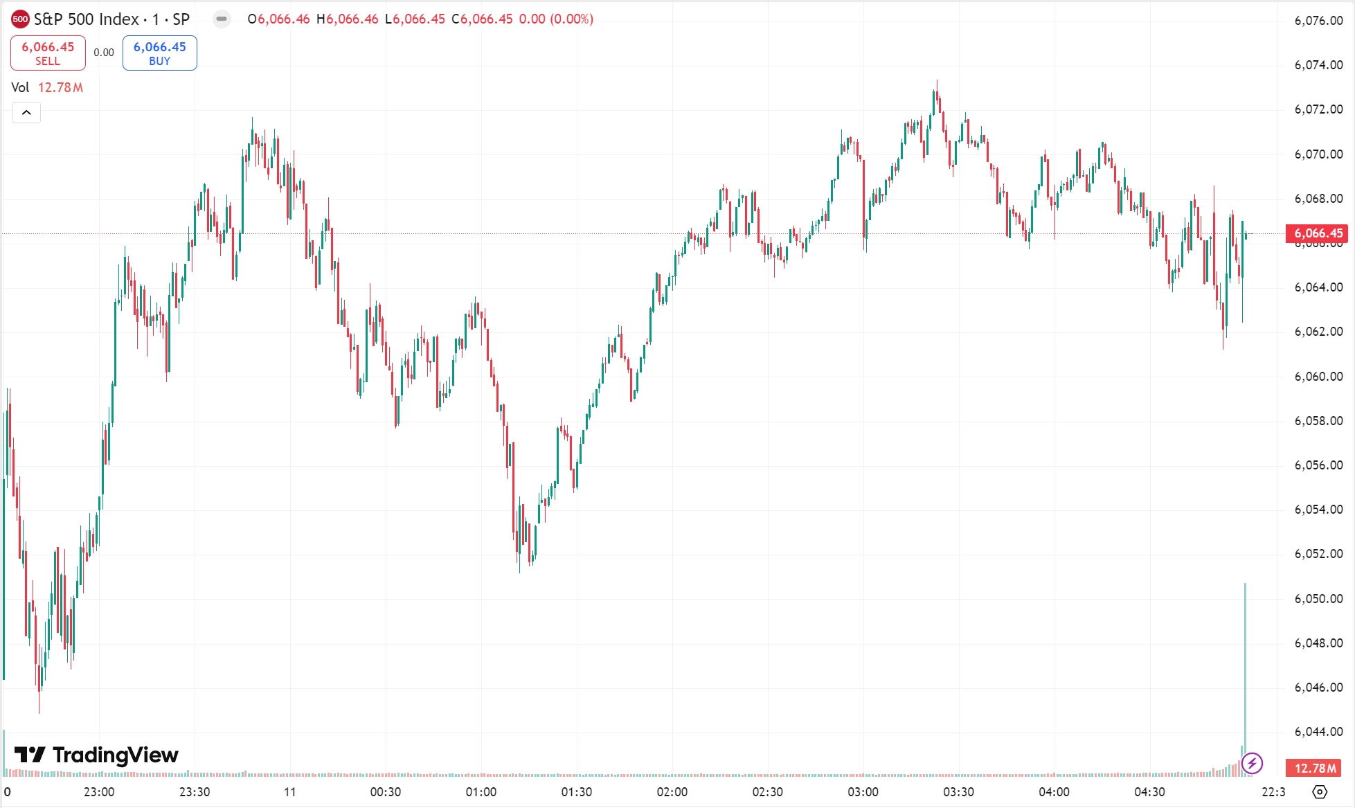 - 标普 500 指数涨 40.45 点,涨幅为 0.67%,报 6,066.44 点