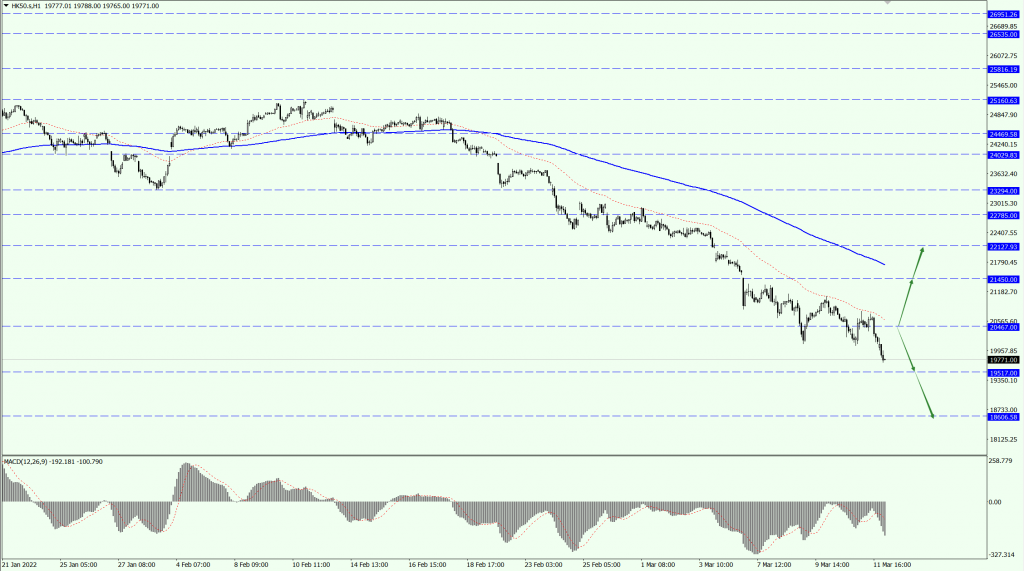 - 如果 HK 50 运行于 20467 一线下方,届时关注 19517 一线的支撑力度。