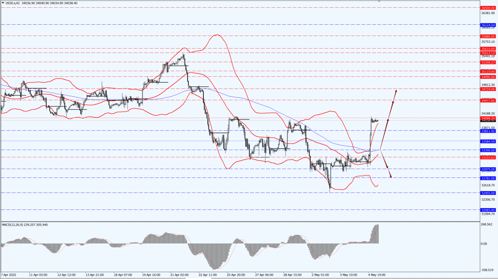 - 如果道指稳定运行于 33390 一线上方,届时关注 34088 和 34477 两个位置的压制力度;