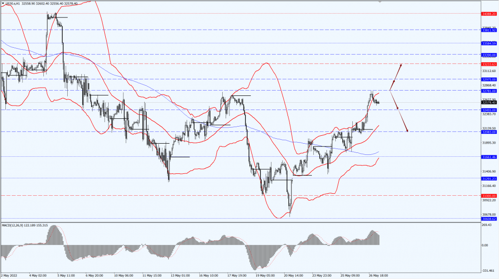 - 如果道指稳定运行于 32781 一线上方,届时关注 32975 和 33233 两个位置的压制力度;