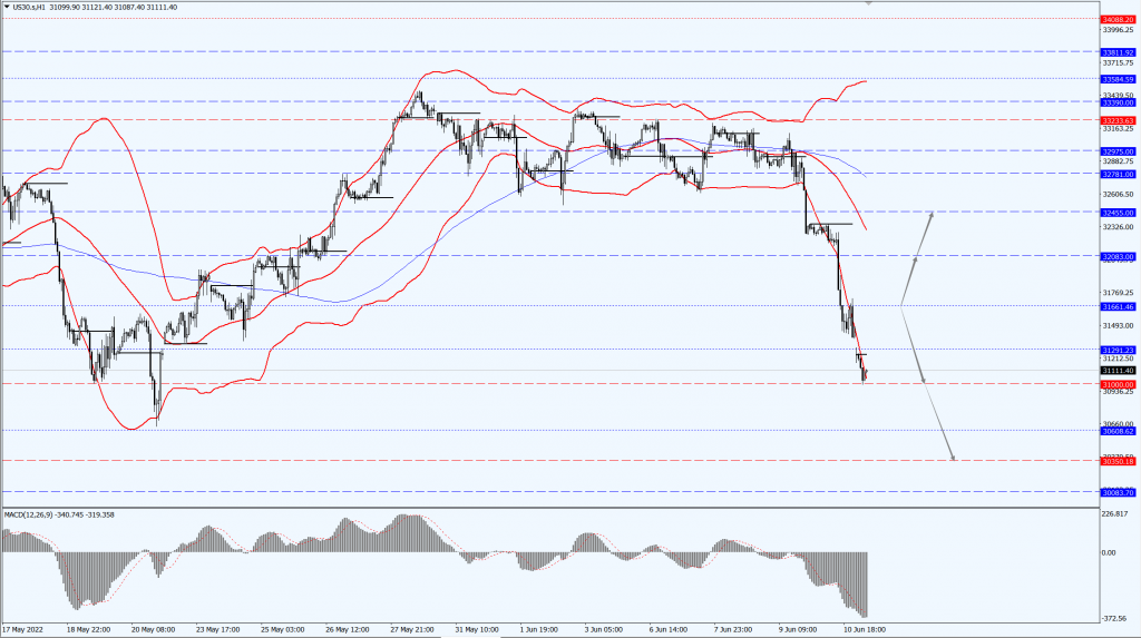 - 如果道指跌至 31661 一线下方,届时关注 31000 和 30350 两个位置的支撑力度。