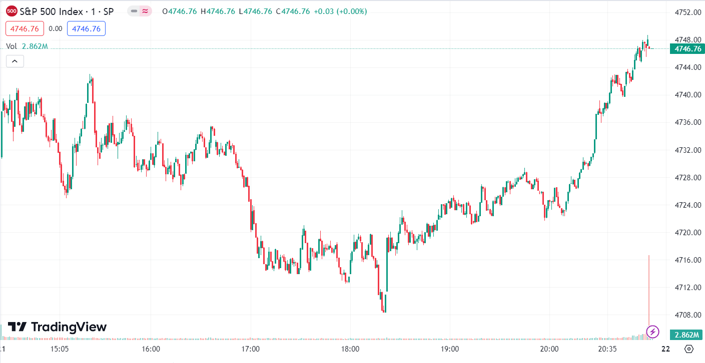 • 标普 500 指数涨 48.40 点,涨幅为 1.03%,报 4,746.73 点