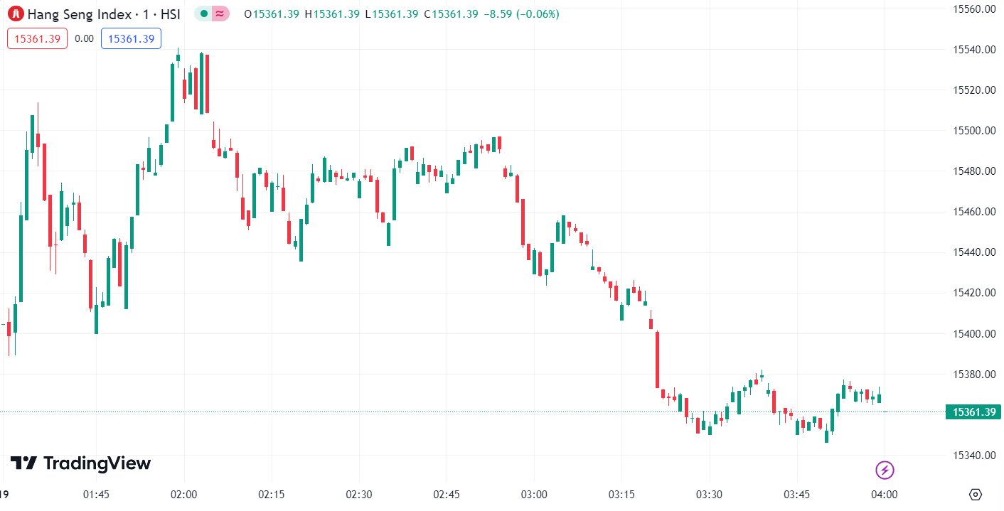 • 恒生指数跌 0.20% ,收报 15,361.39 点