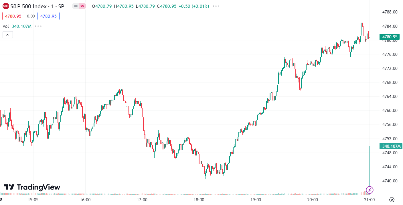 • 标普 500 指数涨 41.73 点 ,涨幅为 0.88% ,报 4,780.94 点