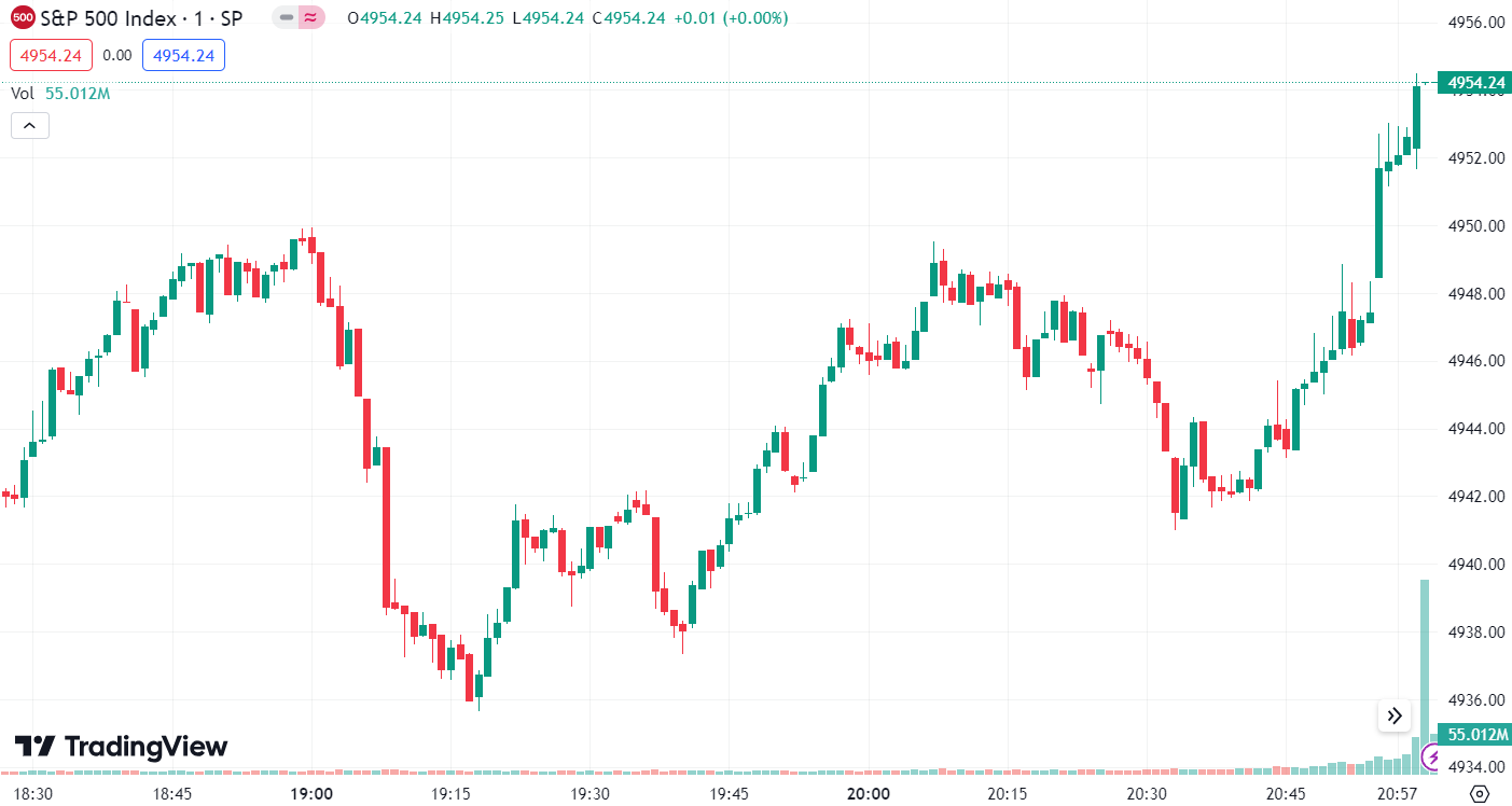 - 标普 500 指数涨 11.42 点 ,涨幅为 0.23% ,报 4,954.23 点