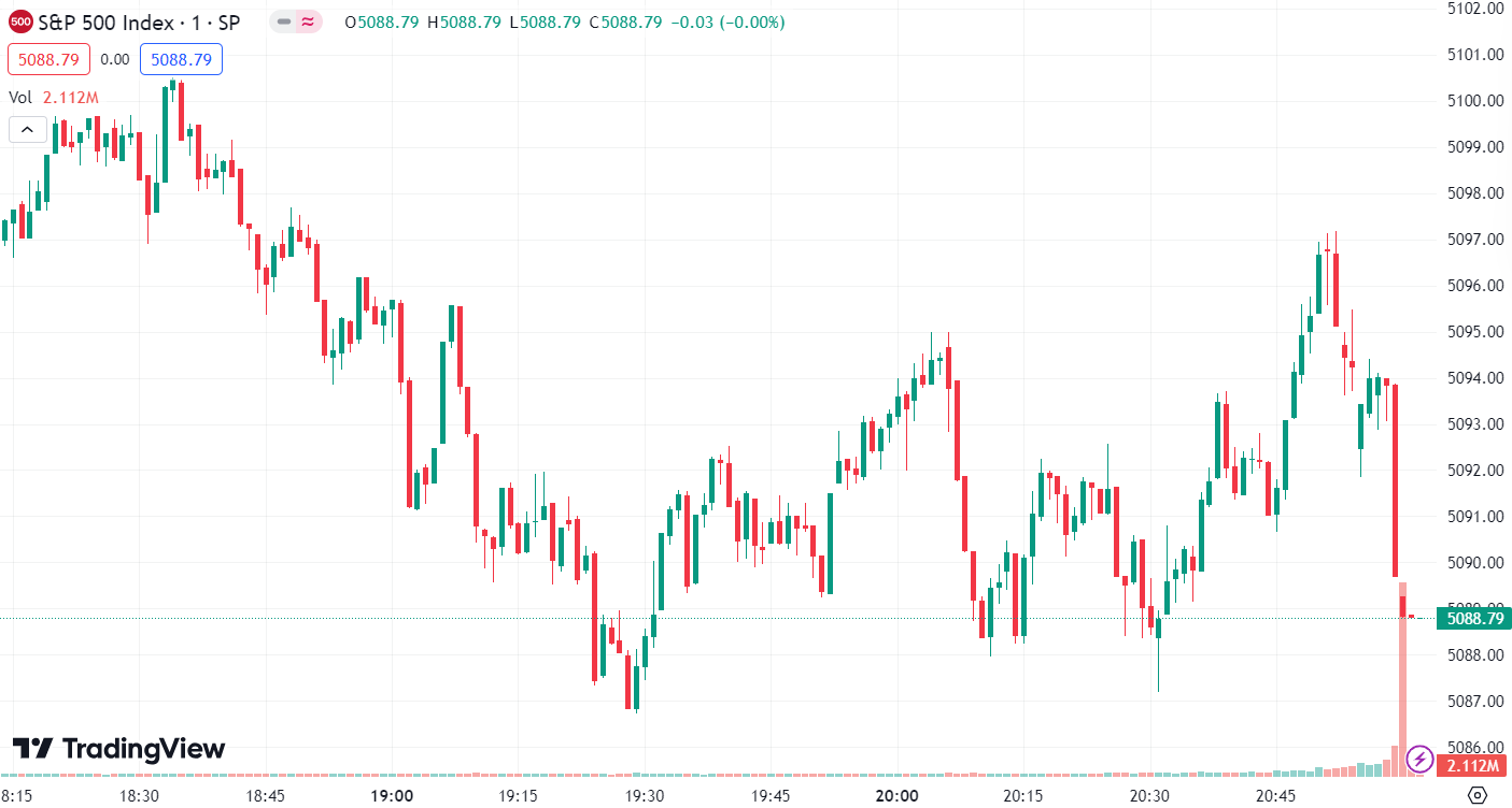 - 标普 500 指数涨 1.77 点,涨幅为 0.03% ,报 5,088.8 点