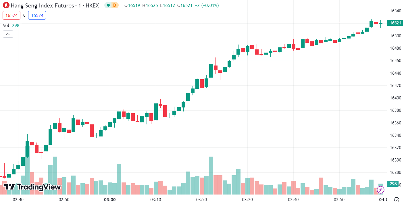 - 恒生指数涨 2.33%,收报 16,539.01 点