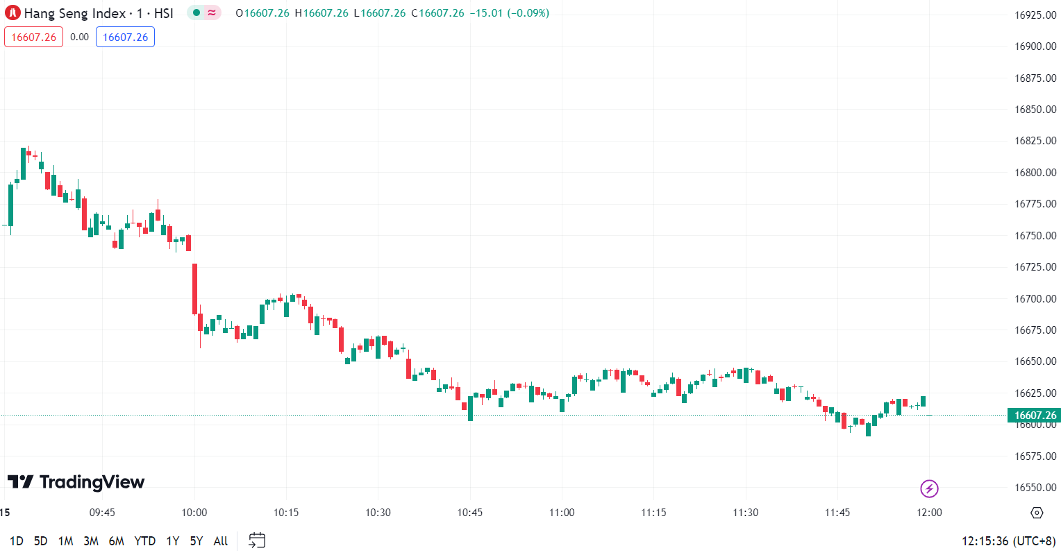 - 恒生指数跌 2.09% ,收报 16,607.26 点