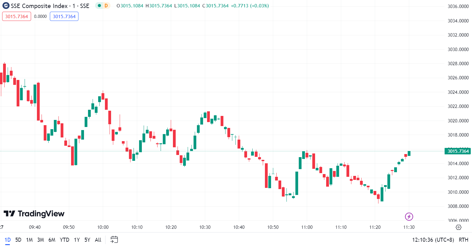 - 沪指跌 0.52%,报 3,015.74 点