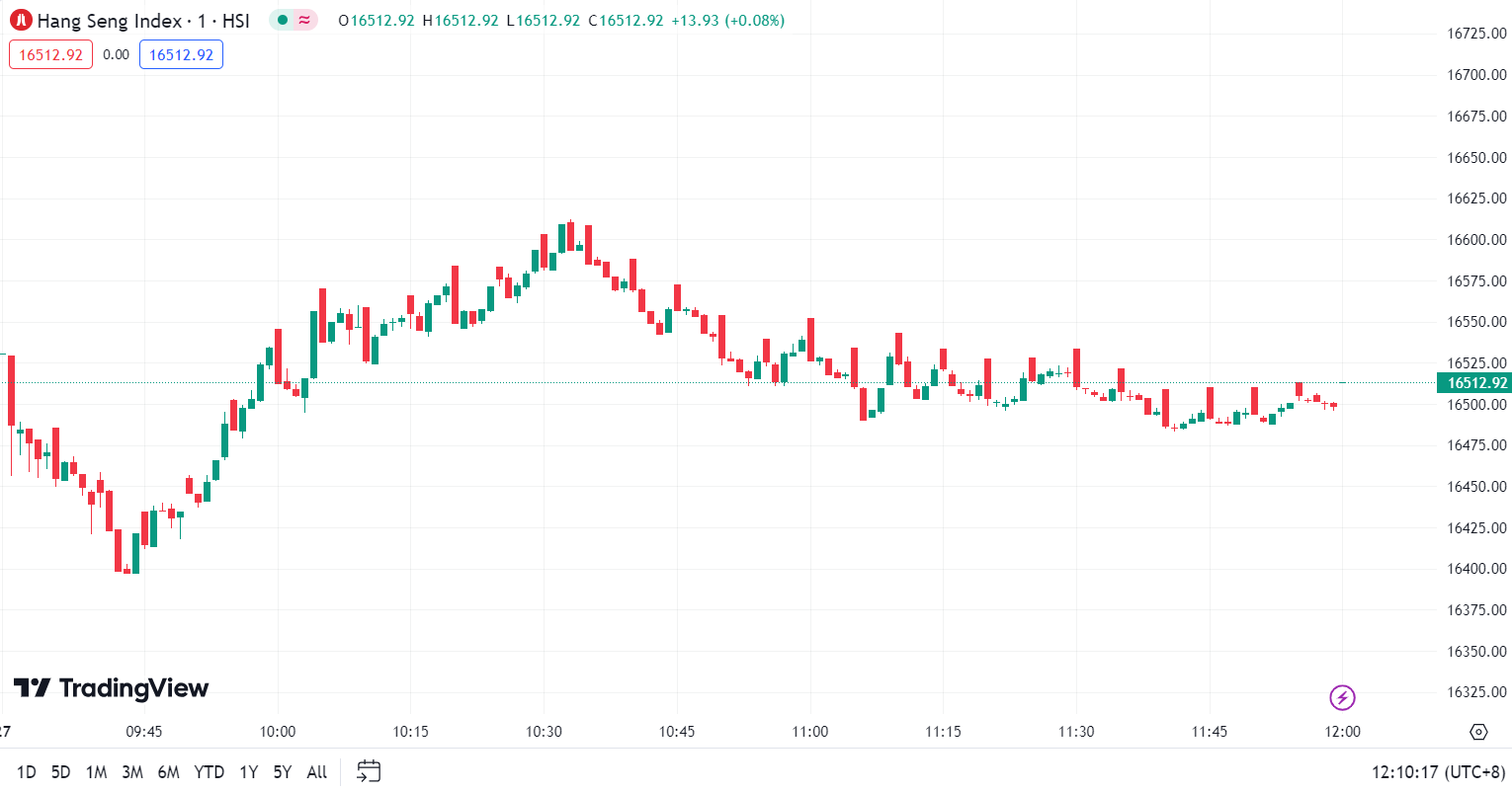 - 恒生指数跌 0.63%,收报 16,512.92 点