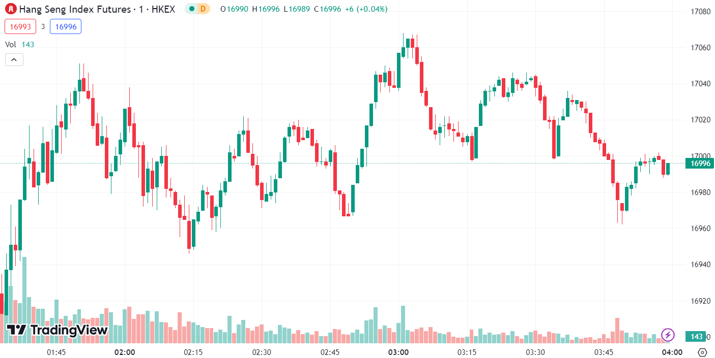 - 恒生指数涨 2.36 %,收报 16,931.53 点