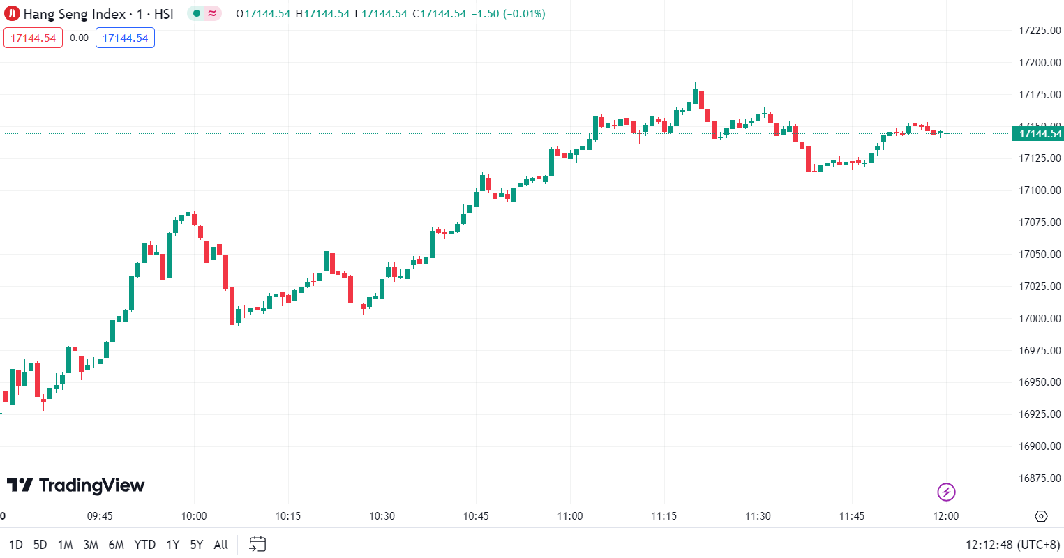 - 恒生指数涨 1.88%,收报 17144,.54 点