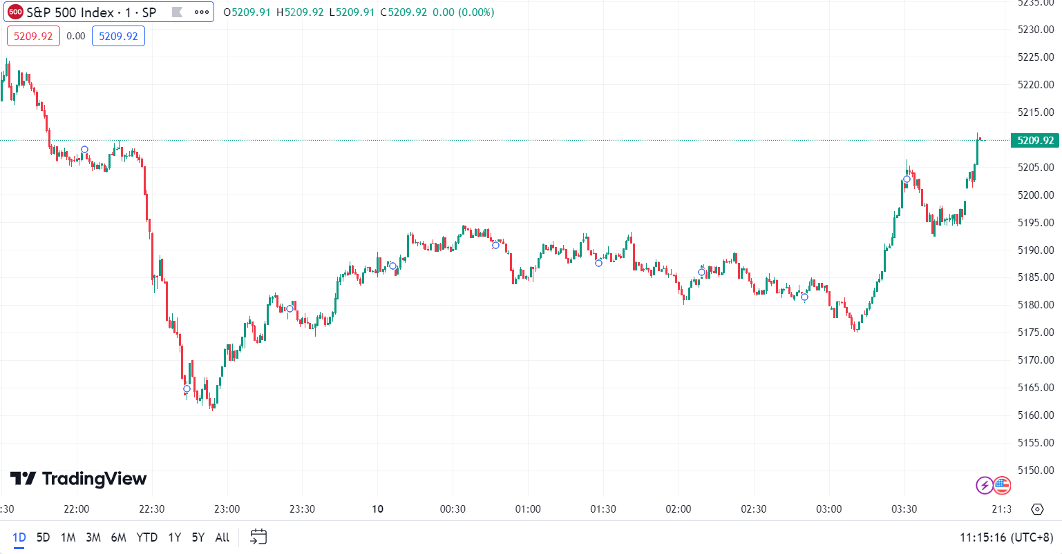 - 标普 500 指数涨 7.52 点, 涨幅为 0.14%,报 5,209.91 点