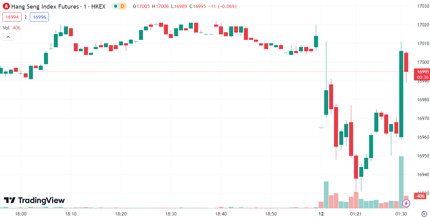 • 恒生指数跌 1.73%,收报 16,799.67 点