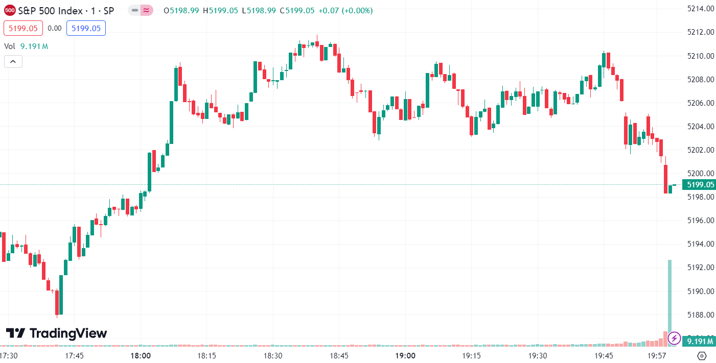 • 标普 500 指数涨 38.42 点, 涨幅为 0.74%,报 5,199.06 点