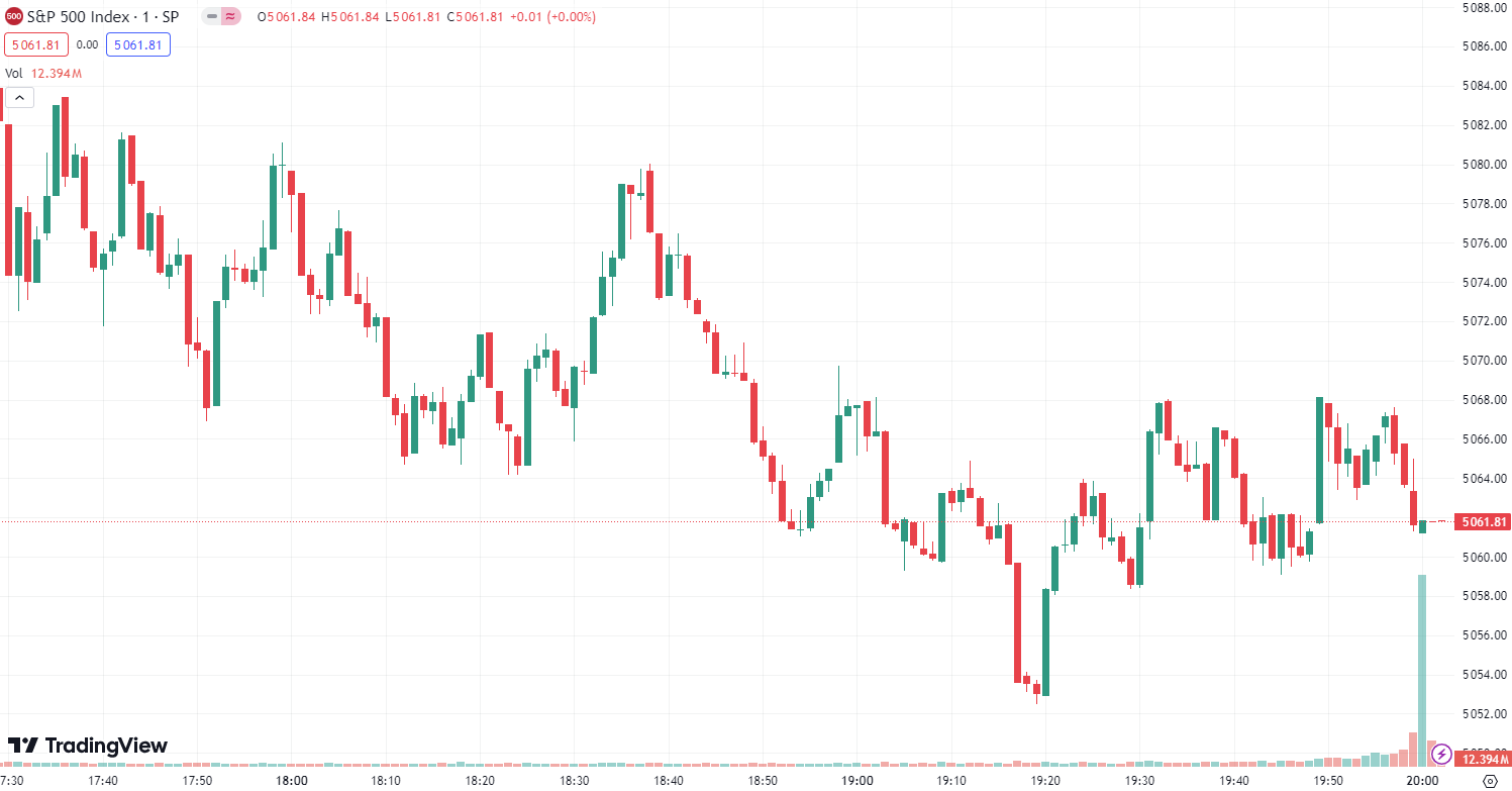 - 标普 500 指数跌 61.59 点, 跌幅为 1.20%,报 5,061.82 点