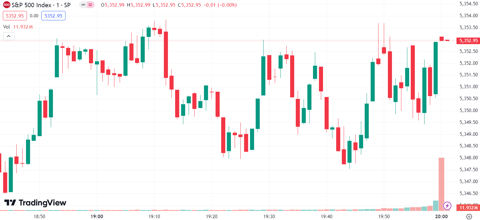 - 标普 500 指数跌 1.07 点,跌幅为 0.02%,报 5,352.96 点