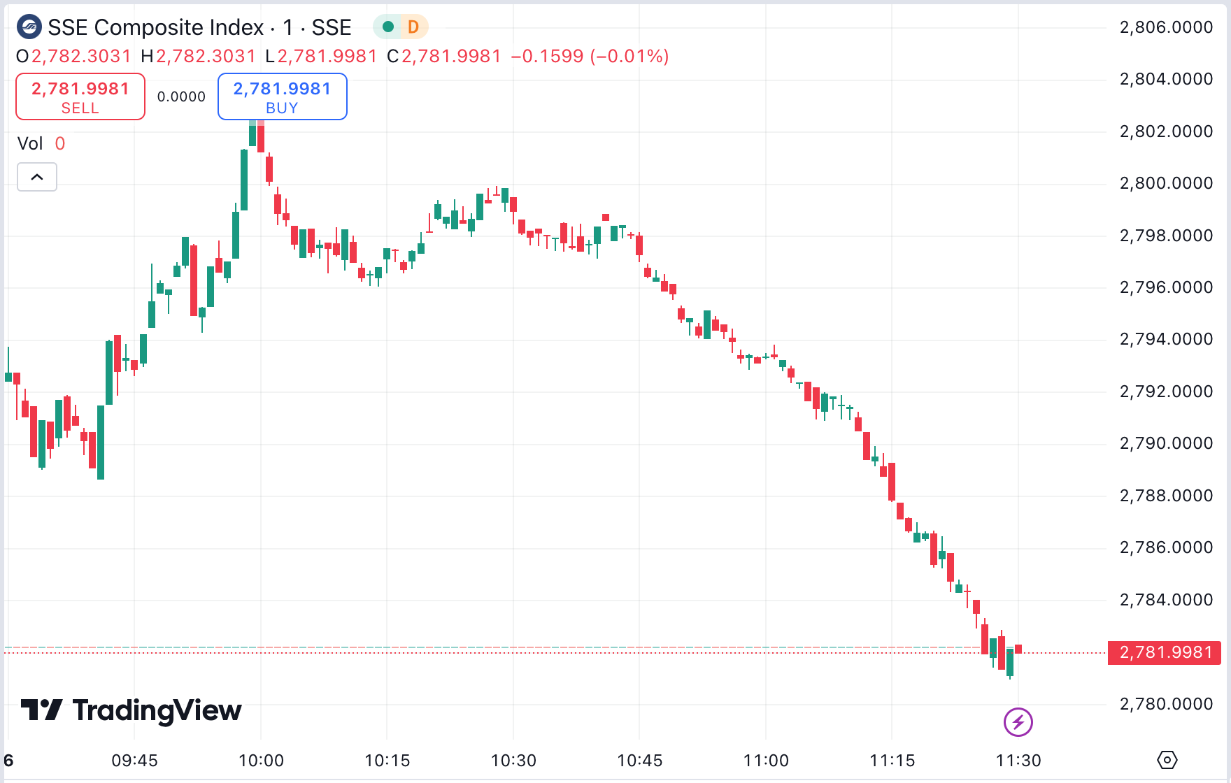 A 股三大指数早盘集体调整,截至午盘,沪深京三市半日成交额 3,517 亿元,其中沪深两市 3,502 亿元,较上日放量 120 亿元。两市超 4400 只个股下跌。