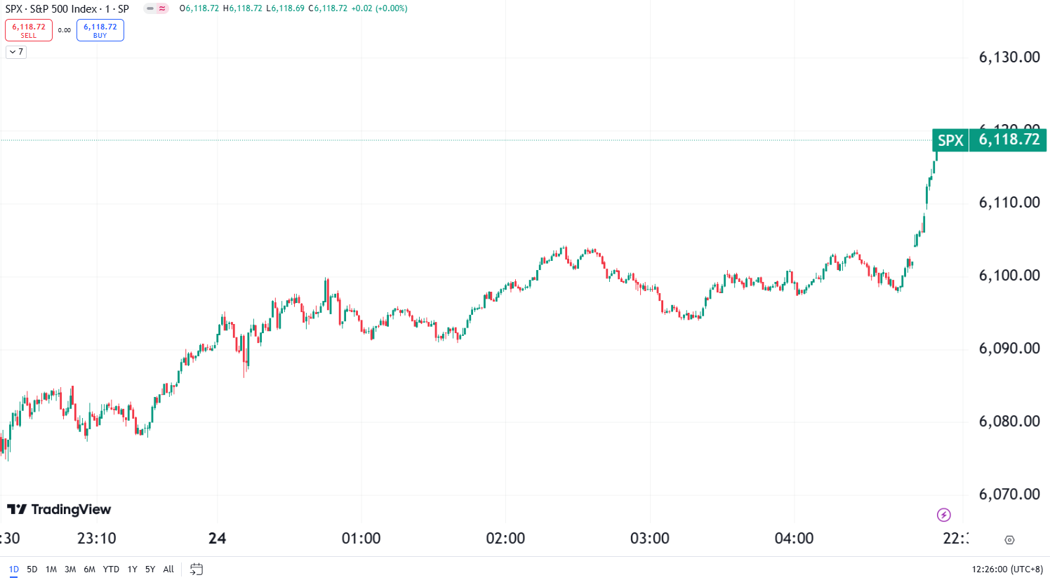 - 标普 500 指数涨 32.34 点,涨幅为 0.53%,报 6,118.72 点