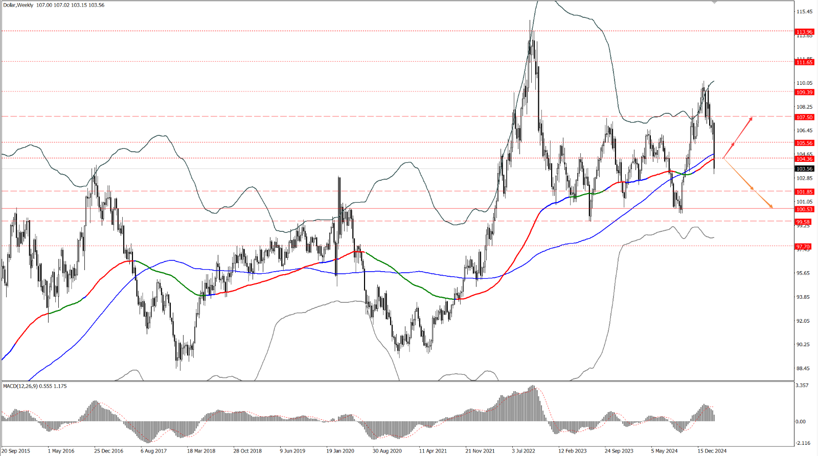 • 如果美指运行于 104.36 一线下方,则依次关注 101.85 和 100.53 两个位置的支撑力度;