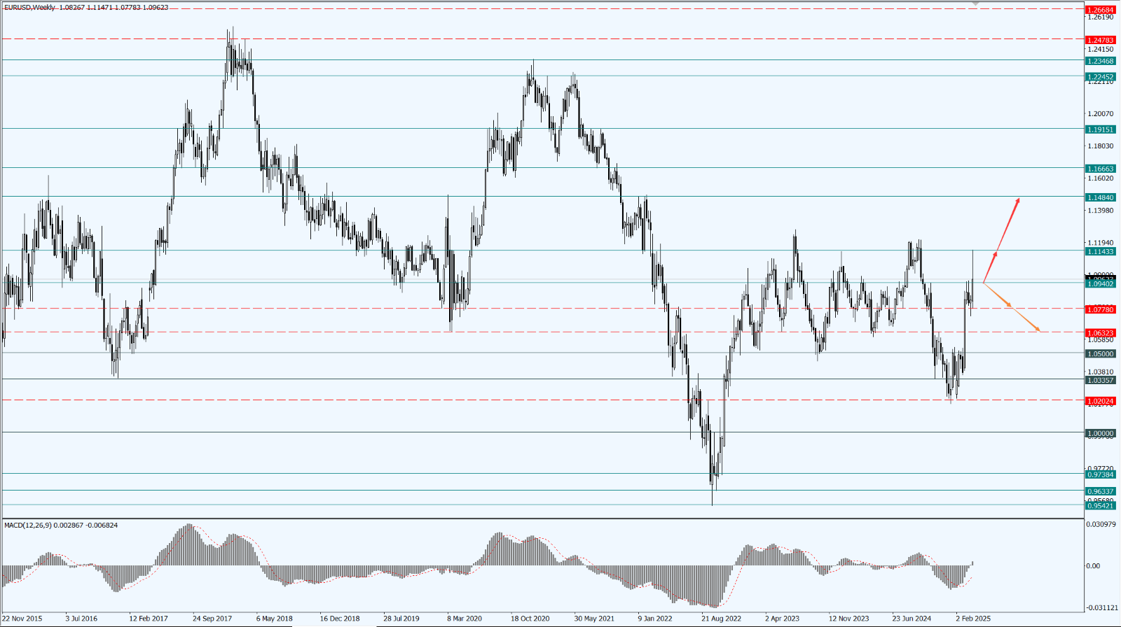 • 如果空方能够攻破多方守护的 1.0778 一线,则将打开空方进一步的下行空间;如果多方能够占据空方防守的 1.1143 一线,则将打开多方进一步的上涨空间;