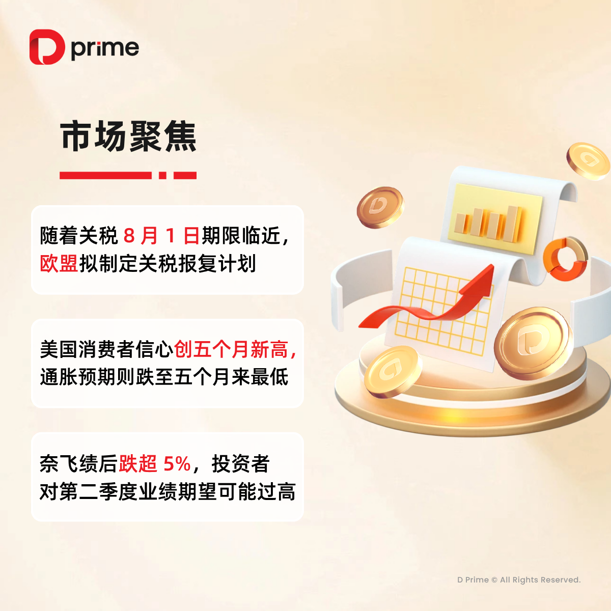 在与 D Prime 等交易平台进行任何交易之前,客户必须确保已阅读并完全理解各自金融工具的交易风险。如果客户对任何与交易和投资有关的风险存在疑问,应主动寻求独立的专业建议。更多详情,请参考 D Prime 等的客户协议和风险披露声明了解更多。