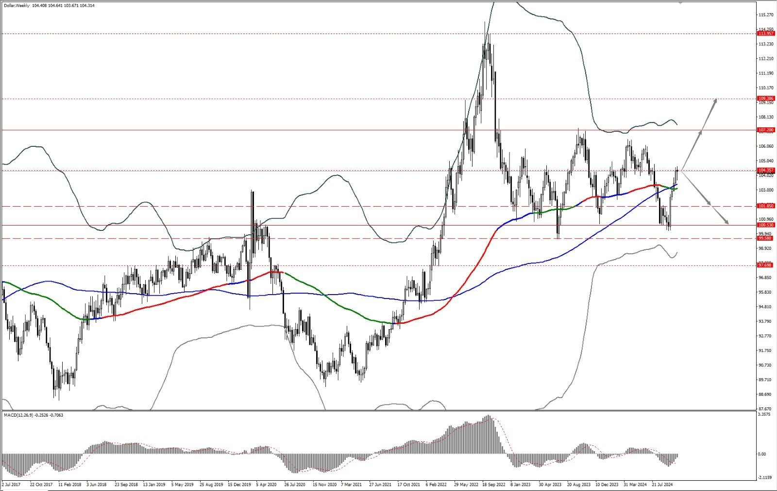 • 如果美指站稳于 104.35 一线上方,则依次关注 107.20 和 109.38 两个位置的压制力度;