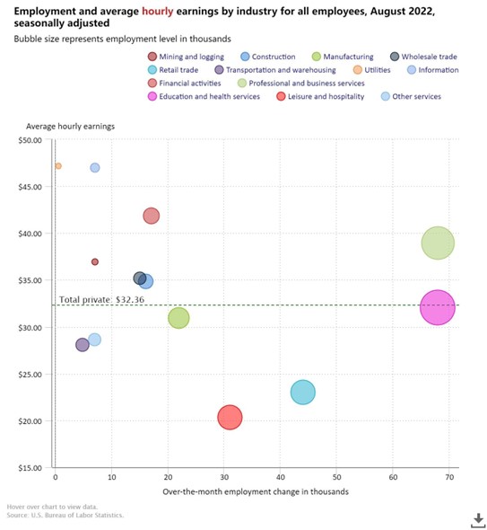 北京时间 9 月 2 日晚 20 点 30 分,美国劳工部公布的 8 月非农就业人数增加 31.5 万人,创 2021 年 4 月以来最小增幅,高于市场预计的 30 万人,较前值的 52.8 万人大幅回落,显著的就业人数增长主要在专业和商业服务、医疗保健和零售贸易。