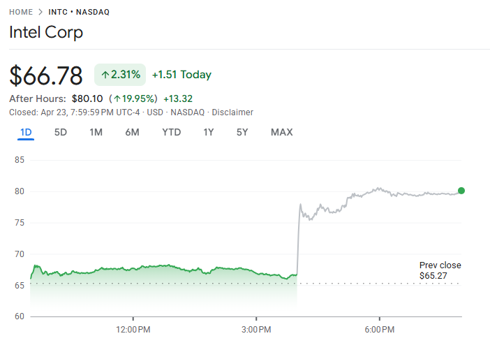 展望二季度,Intel 预计营收将在 138 亿至 148 亿美元之间,高于市场预期的 130.4 亿美元。