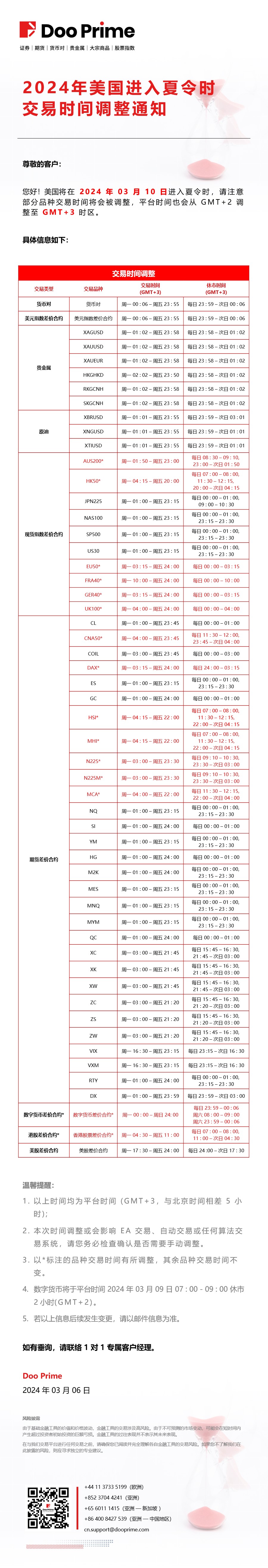 2026 年澳洲进入冬令时交易时间调整通知