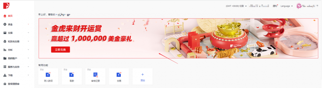 1. 登入用户中心,点击 ‘金虎来财开运赏’ 的横幅进入活动页