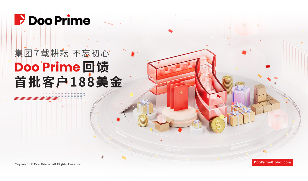 Doo Prime 将在周年庆这个见证发展的时刻,向首批加入 Doo Prime 平台的活跃交易者*,回馈 188 美金,感谢客户坚定不移的支持及陪伴。以上的特选客户将收到一对一的客户经理的通知;其他新老客户也请拭目以待,Doo Prime 将继续带来更多七周年的精彩活动,切勿错过!