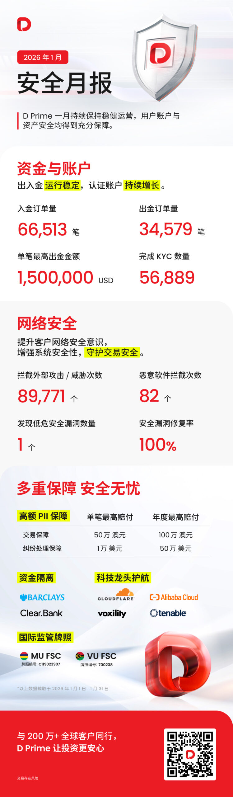 D Prime 一月持续保持稳健运营,用户账户与资产安全均得到充分保障。