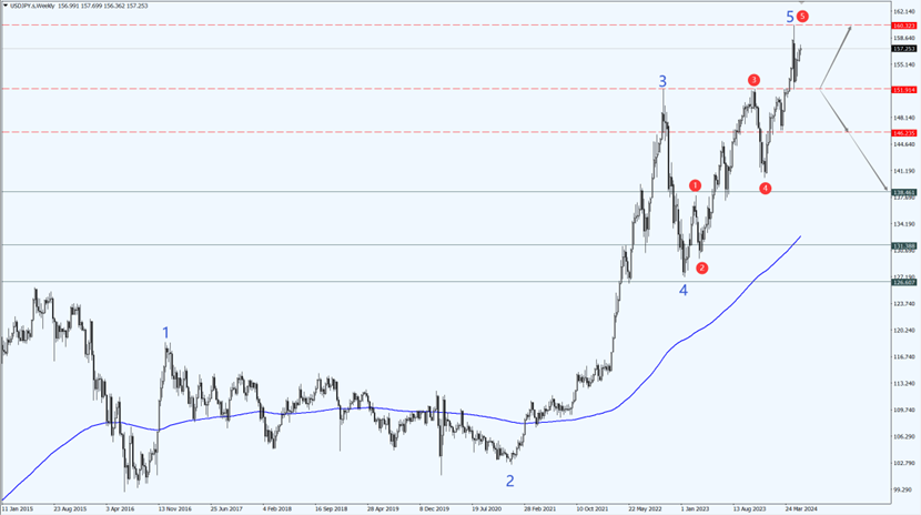 - 因此如果本周美元兑日元稳定运行于 151.91 一线上方,则预示投机性买盘依旧不肯放手,届时,依旧存在测试 160 整数关口的可能性;