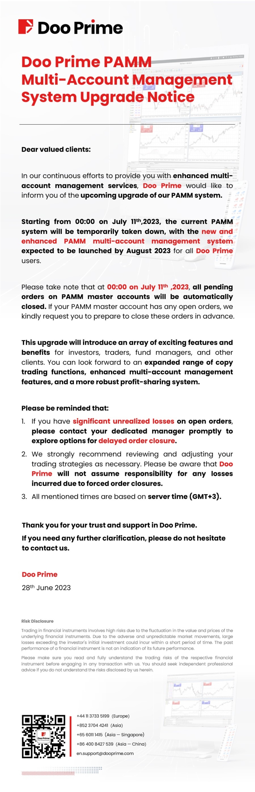 Doo Prime PAMM Multi-Account Management System Upgrade Notice