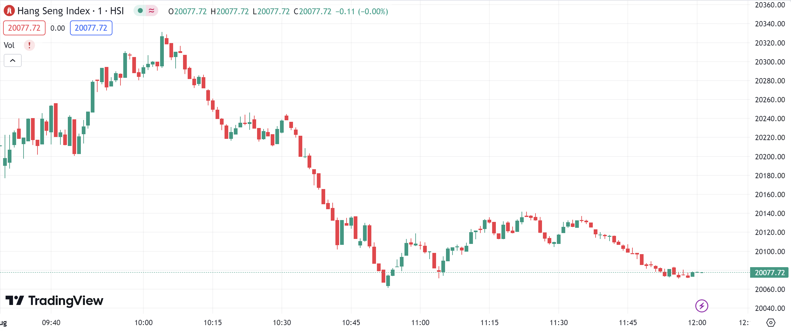 - Hang Seng Index fell by 0.01% and closed at 20,077.83 points.